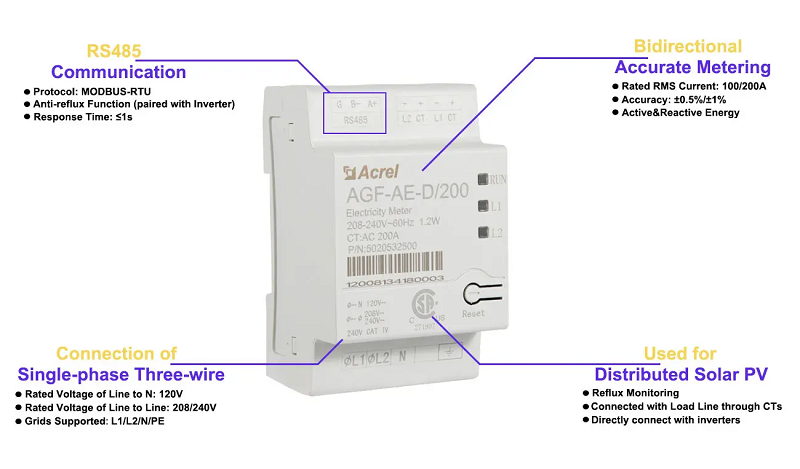 In a single inverter system, the meter is connected directly to the inverter. If your inverter has a built-in revenue grade meter (RGM; the inverter is referred to a revenue grade inverter), you can connect an external meter on the same bus as the RGM.
